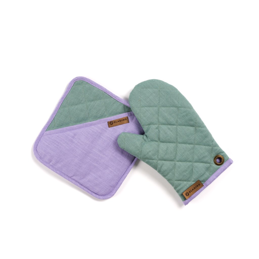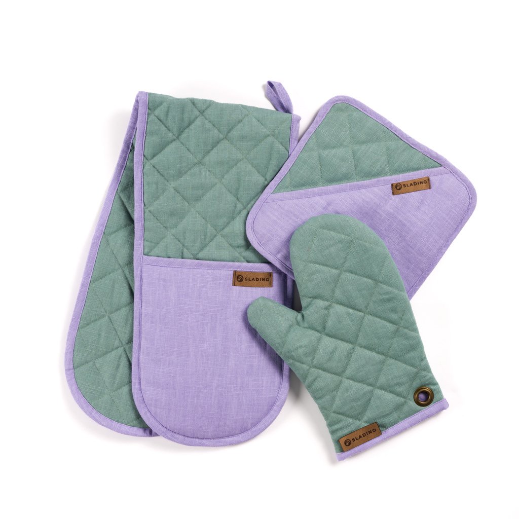 Tento set - chňapka rukavice a chňapka čtverec nabízí komplexní ochranu při manipulaci s horkými plechy a nádobím. Ergonomicky tvarovaná dvoubarevná rukavice je určena pro levou i pravou ruku.