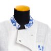 - Rondon je dvouřadový s krytým zapínáním, přičemž vpředu se dvě vrstvy látky překrývají pro větší ochranu a hladký vzhled